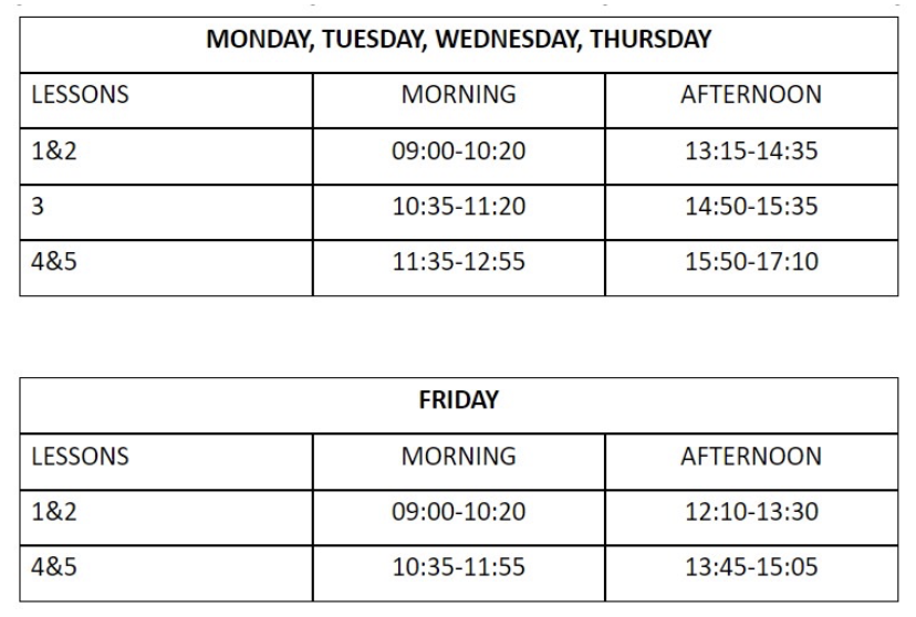 You can see the classes, times and venues for Track 4 below. The lessons start on Monday, April 20.